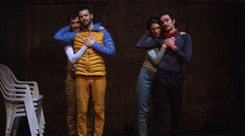 La mise en scène de Tamara Fischer, couplée au jeu sobre et choral de Léonie Keller, Adrien Mani, Charles Mouron et Matteo Prandi, contribuent à partager toute l’essence du texte de Catherine Tinivella Aeschimann. On soulignera la magnifique performance des quatre comédien-nes. Le texte est complexe et surtout porté à quatre voix, sans aucun dialogue ou presque. La fluidité dans les transitions, comparables à celles d’Ueli Steck, est impressionnante. L’équilibre et les gestes précis accompagnent une parole virtuose qui doit l’être encore plus. Finalement, non seulement ce qui est montré sur scène, mais aussi le travail en amont, résonnent comme une métaphore de l’ascension d’Ueli Steck : la précision nécessaire, mais aussi toute la préparation qui la précède. De quoi nous donner envie, à nous aussi, de gravir des sommets, qu’ils soient physiques ou psychiques.