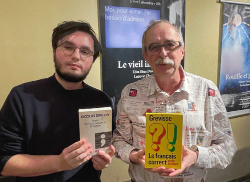 On peut prendre la dictée tout autrement : le foyer d’une salle de spectacle, un saltimbanque aidé par un Maître Capello de circonstance (Jules Dussez), un public volontaire en nombre et puisqu’il s’agit d’un spectacle, de retrouver lors de cette grande dictée les pluriels tortueux, les verbes alambiqués et autres virevoltes plus que folles d’une langue qui ne manque pas de folies. Pivot aurait pu être là.