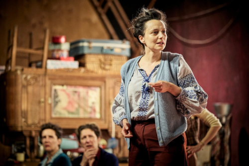 À l’image de ce qui se déroule aujourd’hui en Russie et en Iran, la cuisine communautaire soviétique figurée au plateau est le dernier lieu où la parole féminine peut se déployer. Fébrile, haletante, contradictoire, hésitante, tourmentée. Urgente comme dévidée au fil d’une oralité parfois chaotique. Avant d’être pour partie figée par l’écriture. Elle se dévide dans la reconstitution faite d’un assemblage de bric et broc digne d’un dépôt Emmaüs, de l’art brut. Ou plus concrètement des maisons détruites et rafistolées dans l’Ukraine d’aujourd’hui