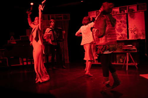 À noter l’impressionnant rôle de composition d’Alexandra Marcos en madone perdue qui sauve ce qui peut l’être avec son ami-gant imaginaire ; la précision et l’assise de Lorianne Cherpillod campant une agaçante girlboss en mal d’enfant ; le professionnalisme sans faille de Maria Mettral capable d’exceller sans coup férir d’un rôle à l’autre ; et le côté décalé et touchant du multi-instrumentiste dégingandé Marc Bermann.