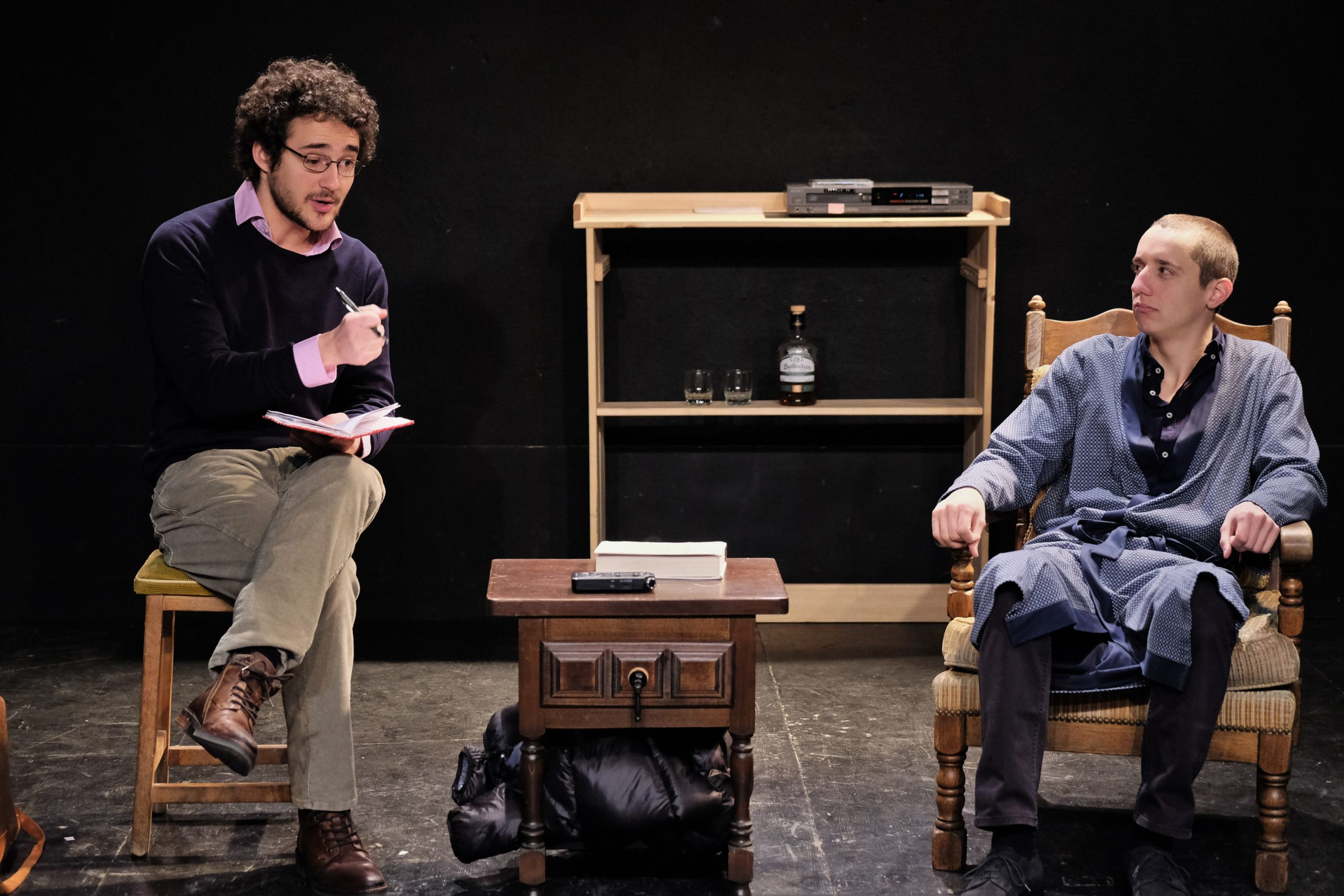 Si ce spectacle nous tient autant en haleine, cela doit principalement au talent des deux comédiens. Sur la scène, le décor est minimaliste : une étagère avec une bouteille, deux verres, et un lecteur de CDs ; un fauteuil, une table basse et un tabouret. Alors que le spectacle commence de manière plutôt comique : Erik surgit en furie chez Abel, après qu’une balle de fusil a manqué de l’assassiner de peu. Avec tout le sarcasme qui le caractérise, l’écrivain lui fera comprendre que, s’il avait vraiment voulu l’assassiner, la balle ne se serait pas logée dans son portail… Le tout avec un décalage ironique certain. Et alors que l’exagération semble d’abord de mise, le jeu, comme la personnalité des deux protagonistes, s’affine petit à petit, et se révèle être une véritable exploration des sentiments humains. Ou comment rendre un magnifique hommage à la plume toujours acérée d’Eric-Emmanuel Schmitt.
