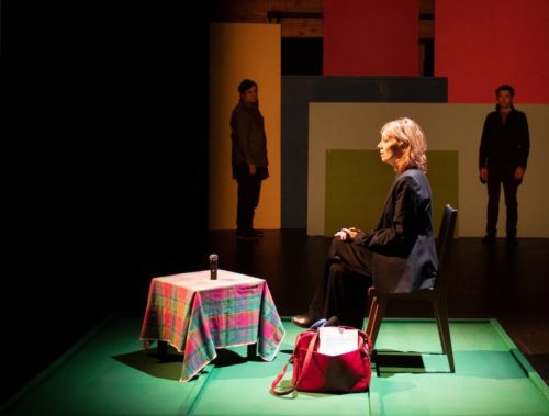 Sur scène, dans un décor fait de panneaux colorés qui se déplacent et tombent à la manière d’un Tetris dynamique, le trio d’acteur·ice·s démontre une impressionnante palette de jeu, chacun·e endossant sans peine plusieurs rôles pour nous conter des histoires parallèles, des croisements imprévisibles et surtout, surtout, redire encore et toujours qu’on peut entrer en poésie comme on entre en militance car