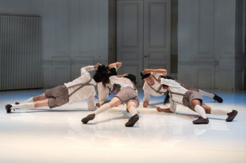 Avec Jiddu, Berrettini propose une sorte de retour aux sources. Puisant dans l’imaginaire folklorique de sa Bavière natale, іl convoque sur scène une troupe de danseur-euses (Sébastien Chatellier, Kevin Fay, Tristan Ihne, Manuella Renard et Emma Terno) en culottes de cuir et hautes chaussettes. Chacun-e entre successivement dans l’espace, rejoint un cercle de lumière au centre du plateau, et contribue à installer la pièce dans un rituel collectif.