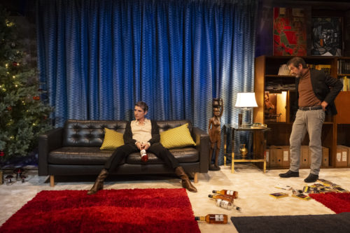L’une des forces de l’écriture d’Eric-Emmanuel Schmitt est de proposer des personnages vrais. Gilles et Lisa ne sont pas des êtres de théâtre, pas des grandes figures héroïques. Au contraire, le couple dégage quelque chose de réel, avec ses failles et ses faiblesses. Ils sont Monsieur et Madame Tout-le-monde, avec l’usure normale d’un couple qui se côtoie depuis plus de vingt ans. Ce réalisme se retrouve dans la mise en scène d’Anne-Marie Delbart. À commencer par le choix du décor : l’intérieur de l’appartement rappelle celui de nos parents ou de nos grands-parents (pour les plus jeunes d’entre nous), sans en faire trop, et surtout sans être uniquement un décor. Tout y est utilisé, pour aider Gilles à faire remonter les souvenirs. On a déjà évoqué les sièges, on peut parler aussi de la bibliothèque, élément central à bien des égards, ou du meuble à alcools, très investi par Lisa, et même de la stéréo, qui fera résonner la même musique que le jour de l’accident de Gilles… Le décor est ainsi réfléchi pour répondre à ce que dit le texte, en plus de ce que la scénographie évoque par elle-même sur ce couple devenu vieux et enfermé dans sa routine.