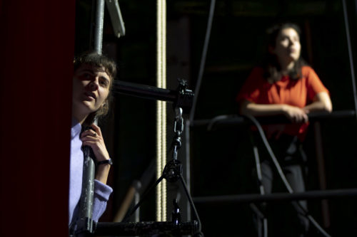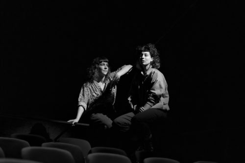Dès le début, nous percevons que cette soirée ne sera pas comme les autres : on nous enjoint en effet à descendre au sous-sol et passer par les loges pour nous retrouver… sur scène, face à une salle vide. Les symboles sont forts d’emblée : ce parcours sous terre sonne comme un rite de passage vers un autre monde, alors que les fauteuils rouges qui nous font face nous confrontent à l’absence. Élégie n°5 sera joué d’abord à l’avant de la scène, puis dans tous les espaces qui nous entourent, y compris la salle. Le tout jusqu’à la splendide surprise visuelle finale.