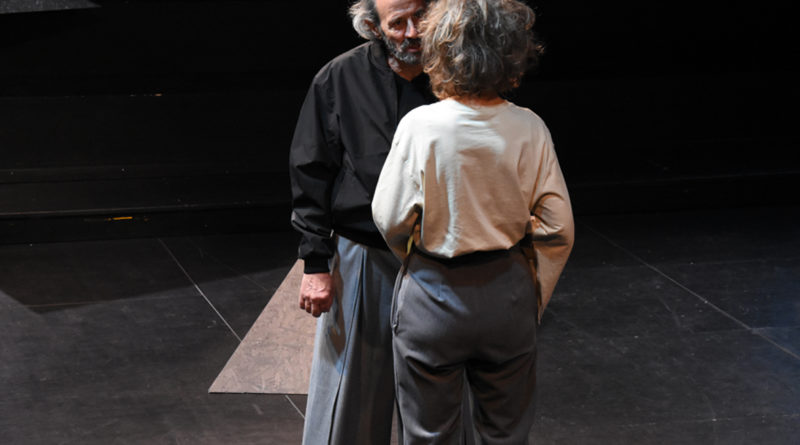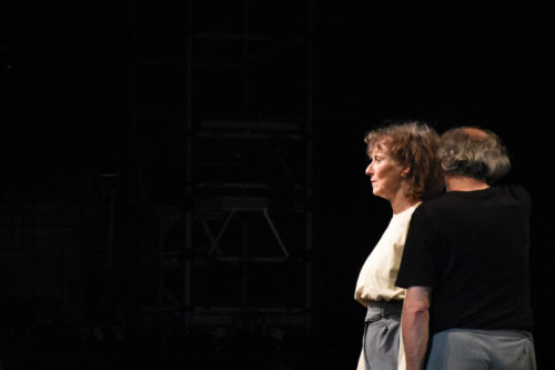 Trop souvent encore, les mises en scène font évoluer les deux personnages de Koltès sur le vide des planches. Or, ce vide fait plus penser à de l’isolement qu’à de la solitude. À l’élégante mise en scène de Sandra Heyn qui valorise la pièce, s’ajoute la scénographie intéressante de Daniela Odermatt, qui rompt un peu ce fait, en proposant une scène accidentée par des pyramides irrégulières. Cela ajoute une dimension au spectacle bienvenue. Et c’est très beau.