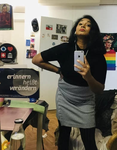 Il y a bientôt six ans, Smiley fait le choix de venir en Suisse avec l’espoir d’une vie meilleure. Cela sera le cas bien que, loin de l’image d’Épinal, elle doive des années durant traverser des épreuves physiques, sociales, amicales, amoureuses, administratives, professionnelles… qui en auraient découragé plus d’un-e. Or, elle est là, devant nous, un sourire coquin aux lèvres pour témoigner de sa formidable résilience. Elle a ce ton de celles et ceux qui sont revenu-es des grandes souffrances. Elle ne se plaint pas, elle explique. Son discours est transpercé de part en part par un humour dévastateur qui nous ferait presque par moments oublier la récurrence des difficultés qu’elle vit depuis presque vingt ans pour passer d’une identité assignée à une identité choisie.