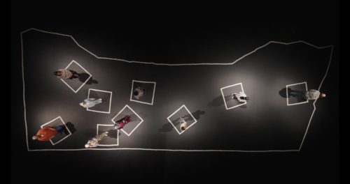 Qui Vit Encore est une affirmation, non une question. En préambule, des mots sur fond noir nous indiquent que les protagonistes ont fui Gaza avant la fermeture de la frontière près de Rafah, en mai 2024. Accueillis provisoirement en Egypte, ils et elles ne peuvent travailler ni bénéficier de prestations sociales. Et alors que le film devait être tourné en Suisse, les autorités leur ont refusé l’accès, faute de visa. Raison pour laquelle Qui Vit Encore a été réalisé en Afrique du Sud. Nous entrons ensuite dans le vif du sujet : sur le sol noir se peignent les contours Gaza. À l’intérieur, des carrés représentent le lieu de vie de chacun-e. Tour à tour, ils et elles racontent leur vie là-bas, dessinent à la craie, sur la table noire, là où ils et elles habitaient, échangent leurs souvenirs. Ils et elles sont entrepreneur/euses, musicien, médecin, influenceuse… Chacun-e raconte ses souvenirs, puis investit son carré et en narre d’autres, avec la volonté de retourner, un jour, là-bas. Puis, chacun-e se retrouve seul-e face à la caméra, accompagné-e des quelques objets emportés au moment de la fuite, pour raconter enfin les quelques jours autour du 7 octobre, jusqu’à la décision de partir, l’inquiétude pour les familles et ami-es…