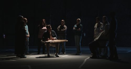 Dans sa note d’intention, Nicolas Wadimoff dit : « Ce que les survivants de Gaza ont vécu ne peut être résumé en quelques mots. Parfois, les gestes, les respirations ou le silence en disent plus long. Face à cette destruction systématique, nos autres mots semblent impuissants. Il ne s’agit pas de camps politiques, mais de raconter l’histoire d’un peuple souvent déshumanisé. Écouter, observer, ressentir – des corps meurtris, des âmes blessées. Le film est un pont entre l’intime et le collectif : un appel à penser ensemble l’impensable, à retrouver notre humanité. Pour que la vie continue – là-bas et ici. » À l’écran, nous ne retrouvons ainsi rien d’autre que les neuf protagonistes, du noir, et la bande de Gaza dessinée. Cette réalisation sobre et simple permet de laisser la parole intime, loin de ce qu’on lit dans les médias, se développer. Aucun point de vue surplombant, aucune voix off ou narration n’est envisagée. On n’entend que cette parole, les silences, l’émotion pure qui se développe.