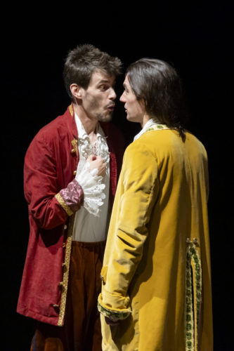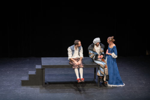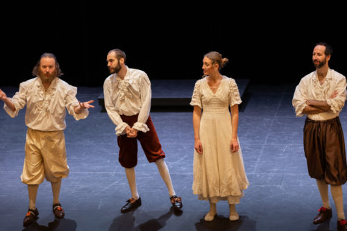 Si vous ne savez pas où l’histoire vous conduit, eux non plus ! Mais leur esprit, leur humour et leur complicité font merveille. Comme des chats, ils retombent sur leurs pattes, donnant à l’histoire un nouveau tournant. Le spectateur, lui, est comme dans ces petites voitures du train fantôme dont on ne sait quelle direction elles vont prendre et propulsent votre corps à droite ou à gauche laissant votre tête suivre docilement, sauf qu’ici ces changements de direction inopinés ne donnent pas lieu à des cris de frayeur, mais à des éclats de rire. Ce à quoi on assiste est étrangement familier ou familièrement étrange. On ne connait pas cette pièce de Molière et pourtant on croit la reconnaitre. Ce n’est toutefois qu’une illusion, puisque tout est inventé de toute pièce sous nos yeux, et qu’aucune des répliques n’est empruntée aux textes de Molière.