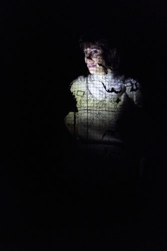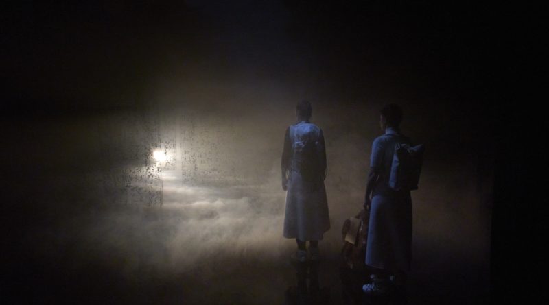 Dans sa mise en scène, Pauline Epiney choisit de ne pas figurer grand-chose. La majorité des actions sont suggérées par les mots, sans que les gestes n’illustrent forcément ce qui est dit. On pense à ce moment de préparation et vérification du matériel, où les deux femmes tiennent leur sac, sans en sortir tout ce qui apparaît sur la liste. D’autres scènes contrastent avec ce moment, comme lors d’une pause où Iris (Alexandra Tiedemann) et Rose (Rachel Gordy) prennent le temps de boire et manger. La scénographie accompagne cette idée de suggestion, avec quelques roches qui s’illuminent, figurant subtilement le décor montagnard, alors que le plateau est principalement composé de dentelles noires, rappelant la dimension de deuils et la finesse des détails dont il est question dans cette histoire. L’éclairage lui-même est sombre, froid et ciblé sur les deux protagonistes lorsqu’elles prennent la parole. Le jeu reste alors très sobre, pour faire passer le texte au premier plan.