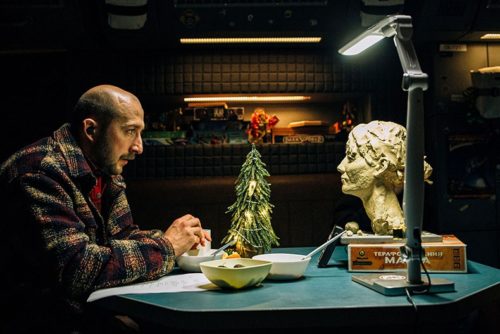Cette chape de plomb, ce sentiment d’isolement et de menace existentielle, imprègnent chaque image, mais en mettant le tragique à feu doux sur fond de déco et guirlande lumineuse de festivités. Andriy, seul dans son vaisseau, flottant dans un univers hostile où sa planète-mère a été rayée de la carte, devient une métaphore saisissante de l’Ukraine elle-même.
