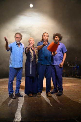 Près de deux heures durant (qu’on ne voit pas passer), nos géniaux saltimbanques déploient la grande palette de leurs talents pluridisciplinaires au service d’un récit polyphonique et polyglotte. Le français et l’espagnol se marient, le texte devient musique, la musique langage. Se découvre alors peu à peu une fresque poétique et politique de l’esprit métissé de l’Amérique latine.