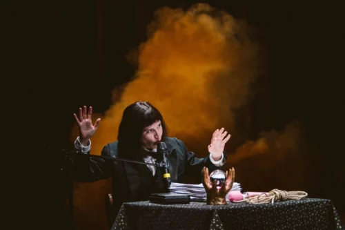 On ne sait pas trop. Comme on ne sait pas trop quoi penser de cette succession de scènes anxiogènes qui s’étirent en longueur sans transitions claires entre elles. Carolina Bianchi a beaucoup de choses à dire et, ça tombe bien, elle a la plume facile et brillante. Mais trop d’info risque de tuer l’info. Sur un ton récitatif, elle scande aussi sa performance d’extraits de poésie quelque peu abscons. À noter qu’elle s’exprime en portugais et que tout cela est sous-titré pour rajouter à la complexité de l’ensemble. On a parfois la sensation d’assister davantage à une cérémonie mystico-païenne d’invocations diverses qu’à un spectacle de théâtre. Affranchie de tenir un quelconque rythme, l’artiste-phare de la production prend le temps qu’elle veut et le public en otage volontaire lors de cette plongée sans fond dans les marasmes des démons de l’abusée.