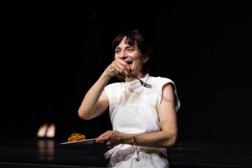 Il y a un peu plus de sept ans, en novembre 2017, Alessandra, la mère de Valeria, décède subitement d’une crise cardiaque. Loin d’elle, sa fille, est à Valenciennes pour jouer Ivanov – une pièce dans laquelle, au deuxième acte, la mère avait tant admiré sa fille. Pendant plusieurs mois, une obsession tenaille Valeria, saisir et retracer les derniers instants de sa mère, ses pas, ses gestes. Sur la scène dénudée et dévoilée sans artifice du POCHE/GVE, les portes restent ouvertes comme une invitation chaleureuse à entrer ou à secourir. Valeria, nous donne à voir : sa mère, elle-même, et leur relation. Le temps d’une représentation, elles partagent les mêmes chaussures, le même nez, un même corps. La comédienne, par la finesse de son jeu, change sa coiffure, ses gestes, et sa voix, avec rapidité et exactitude, pour être l’une ou l’autre, et peut-être parfois l’une et l’autre. Dans cette incarnation de l’autre, bien loin d’un simple procédé théâtral, se joue quelque chose qui émeut profondément, comme la face apaisée après l’obsession des derniers instant, l’ouverture d’un espace pour se rencontrer autrement et se confier, avec pudeur, ces choses mal ou pas encore dites. Sur scène soudain, ces gestes qui pouvaient peut-être agacer, entre une mère et sa fille – les lasagnes apportées après la représentation, les petites remarques sur la manière de se coiffer – sont autant de lieux empreints de tendresse et de rire dont on saisit, sous l’apparence du banal et du quotidien, toute l’épaisseur et la richesse. Difficile en tant que spectateur·ice, de ne pas se plonger alors dans nos propres relations, et de songer à toutes ces petites choses qui rendent nos relations uniques et vivantes, à tout ce qui nous relie à ceux et celles que nous avons perdu.