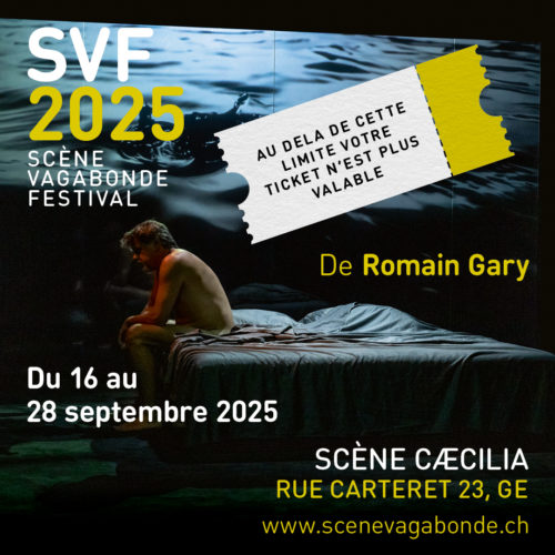 Le Scène Vagabonde Festival enchaînera avec l’adaptation du texte de Romain Gary, Au-delà de cette limite votre ticket n’est plus valable. Dans une mise en scène de Valentin Rossier, un homme s’interroge sur sa capacité à en être un, à la suite de problèmes d’érection. Ce souci d’andropause, pourtant banal et répandu, prend une place beaucoup trop importante dans son esprit. Le calvaire intérieur qu’il vit est contrebalancé par l’humour omniprésent dans l’œuvre de Romain Gary, et porté à la scène par les brillantes performances de Michelle Shapa, Mauro Bellucci et Vincent Jacquet, qui accompagnent le pauvre homme interprété par Valentin Rossier.