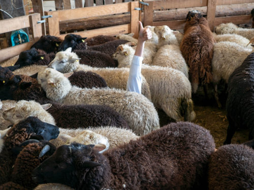 Toujours par ce même procédé, Marion Thomas, que nous n’avons toujours pas vue, nous révèle sa passion pour les moutons. Nous apprenons que ce sont des animaux très empathiques, qu’ils peuvent reconnaître même après plusieurs années un membre du troupeau. Cela s’explique par le fait que le troupeau est le seul moyen de défense de cet animal de pâturage, proie potentielle des prédateurs. Nous découvrons également que les moutons ne rejettent jamais un nouveau membre, après une habituation à l’odeur, le ou la nouvel-le arrivant-e est intégré-e au troupeau. Marion Thomas apparaît à ce moment-là sur le plateau, à grand renfort de déodorant pour nous habituer à sa présence. Elle nous apprivoise petit à petit, en se rapprochant lentement et adoptant des postures pour gagner la sympathie du troupeau en face, nous.