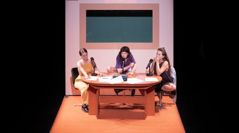 Mais Macbeths on air ne serait rien sans le talent de ses trois comédienne : Liona Lutz, Georgia Rushton et Mathilde Lyon excellent dans leurs rôles. Elles parviennent à alterner les différents accents – genevois, suisse-allemand, écossais, québécois, britannique, américain, et même sud-américain lors des dépêches en espagnol ! – sans tomber, là non plus, dans la caricature. Le tout est également réalisé avec une belle économie de moyens : outre le plateau de radio et la vitre qui se trouve derrière, peu de costumes sont utilisés pour incarner la multitude de personnages, si ce n’est quelques vestes et un ou deux accessoires. On apprécie particulièrement l’utilisation de l’espace derrière la vitre, notamment lors de l’intervention des manifestant·e·s anti-Macbeth.
