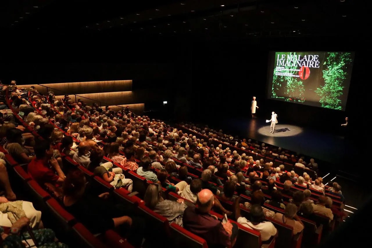 Le bonhomme est comme à son habitude frétillant, truculent, lettré et captivant. Aidé de projections vidéos et photos, il revient sur la saison écoulée avec un savoir dramaturgique bien à propos : la construction du nouveau théâtre en pleine pandémie, l’exil niçois de la cuisine, l’esprit du renard[1], l’inauguration en zigzaguant entre Covid, reports et annulations, l’éblouissement renouvelé à chaque création, le taux de remplissage soviétique, le crève-cœur poquelinesque résolu sans oublier la belle mise en lumière de chaque rouage de cette formidable fabrique de rêve qu’est un théâtre.