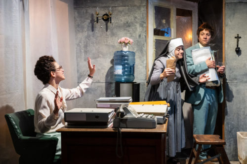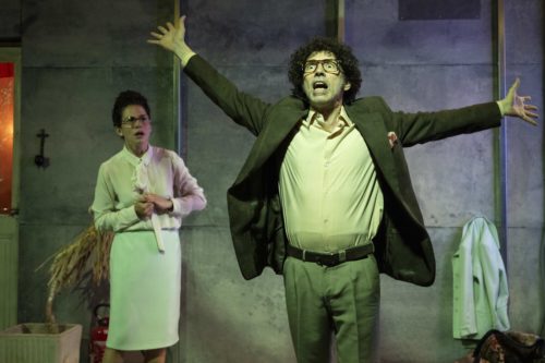 Forza est de constater que l’écriture du génie napolitain n’a pas pris une ride. Elle se joue avec toujours autant d’actualité des porosités sociales entre mensonge et vérité, entre fiction et réalité. Par le rire et l’absurde, le texte parle de la place de la culture en général et de la valeur du théâtre dans la société en particulier. La présente version n’a eu qu’à adapter les costumes et à questionner les genres des personnages au goût du jour. Ainsi le haut fonctionnaire de 1964 est devenu une femme de pouvoir, l’institutrice un maître d’école en tablier alors que le curé d’origine se retrouve être une bonne soeur déjantée admirablement servie par la géniale Laurie Comtesse.