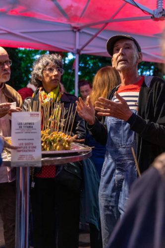 Au Galpon, on réitère le même concept que l’an dernier : après un bref mot d’introduction de Gabriel Alvarez et Nathalie Tacchella, nous étions invité-es autour de tables, à raison d’une par spectacle, et de plats imaginés par le chef, en fonction de la thématique de chacun d’entre eux.