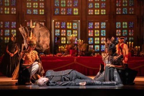 On n’entre pas dans Bal Impérial comme dans un spectacle de valse traditionnel sur des musiques notamment de Johann Strauss fils nées dans un XIXe siècle constellé de guerres et de conflits meurtriers. À l’image du nôtre. On y entre comme dans un banquet où personne n’aurait encore osé dire que quelque chose cloche. La longue table dressée au centre, les chandeliers, les victuailles comme jaillies d’une nature morte de maître, les étoffes lourdes et légèrement déglinguées composent un décor à la fois somptueux et inquiétant. Les compositions straussiennes, dont la scie des fêtes de fin d’année, Le Beau Danube Bleu, sont interprétées parfois comme un mauvais rêve flottant, par un OSR bien dirigé par Constantin Trinks.